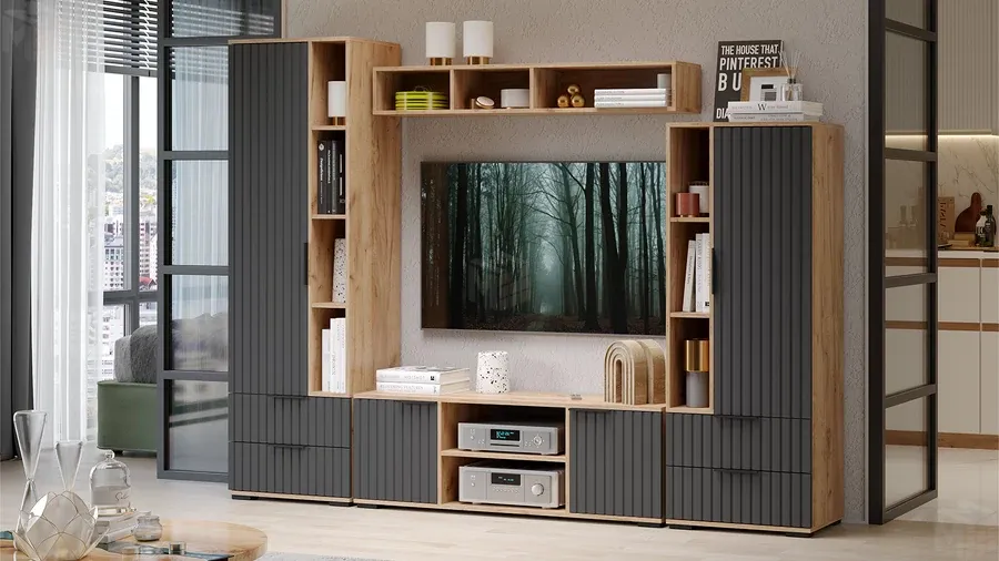 Набор мебели для гостиной Хилтон №2 Дуб Крафт золотой, Графит матовый
