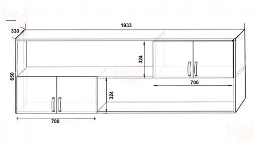 Наполнение: полки и закрытые секции (открывание - две двери).