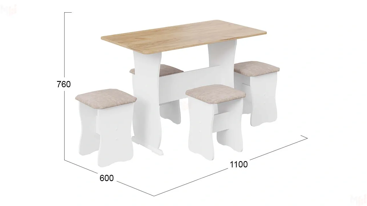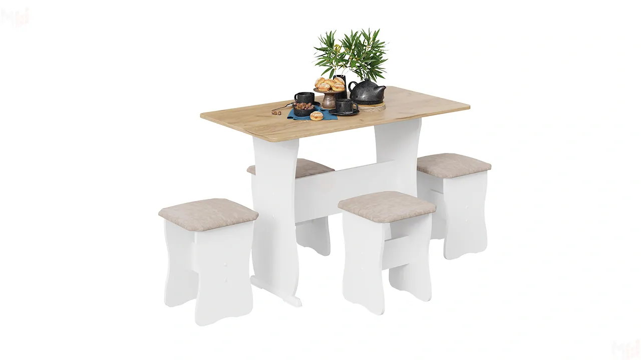 Обеденная группа тип 1 - МФ-101.006 Белый, Дуб Крафт золотой, Иск.замша Latte