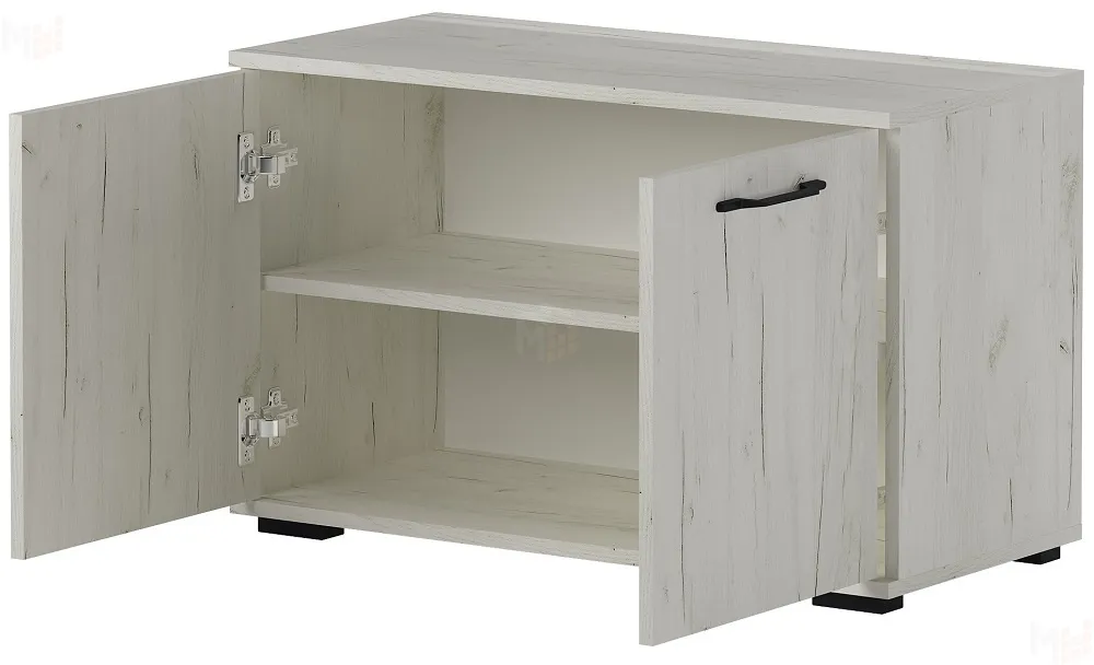 Обувница "ИТАЛИЯ" О-800 двустворчатая, с полкой. Устанавливается стильная металлическая ручка, чёрная, матовая. Чёрные ножки-опоры.