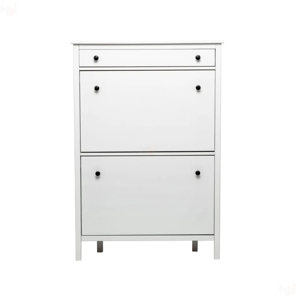 Этажерка для обуви выполнена в сдержанном скандинавском стиле. Акцент сделан на ненавязчивом декоре из круглых металлических ручек, который поддерживает стилистику модели. Тумба доступна в двух универсальных цветах — белом и чёрном, что позволяет легко вписать её в любой интерьер.