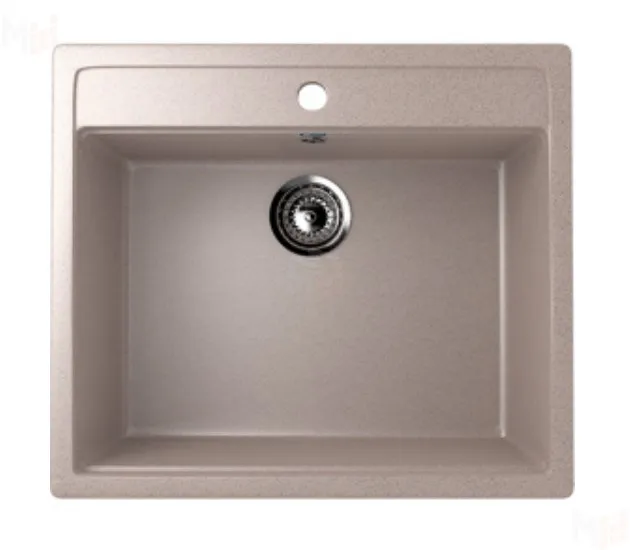 Мойка из искусственного камня, которую по своей геометрии можно отнести как к квадратным, так и прямоугольным. Все это обусловлено размерами ее сторон, которые практически равны. Технически ее форма конечно прямоугольник, но фактически ее покупают люди, которые ищут квадратные мойки. Небольшой бортик со стороны смесителя будет препятствовать скатыванию капель воды за пределы мойки. Это очень актуальный нюанс, особенно если вы часто пользуетесь смесителем и у Вас мокрые руки.