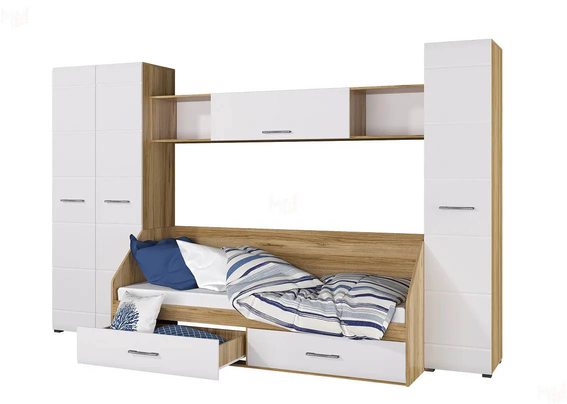Производится в цвете ЛДСП - Дуб золотой/фасады МДФ Белый глянец