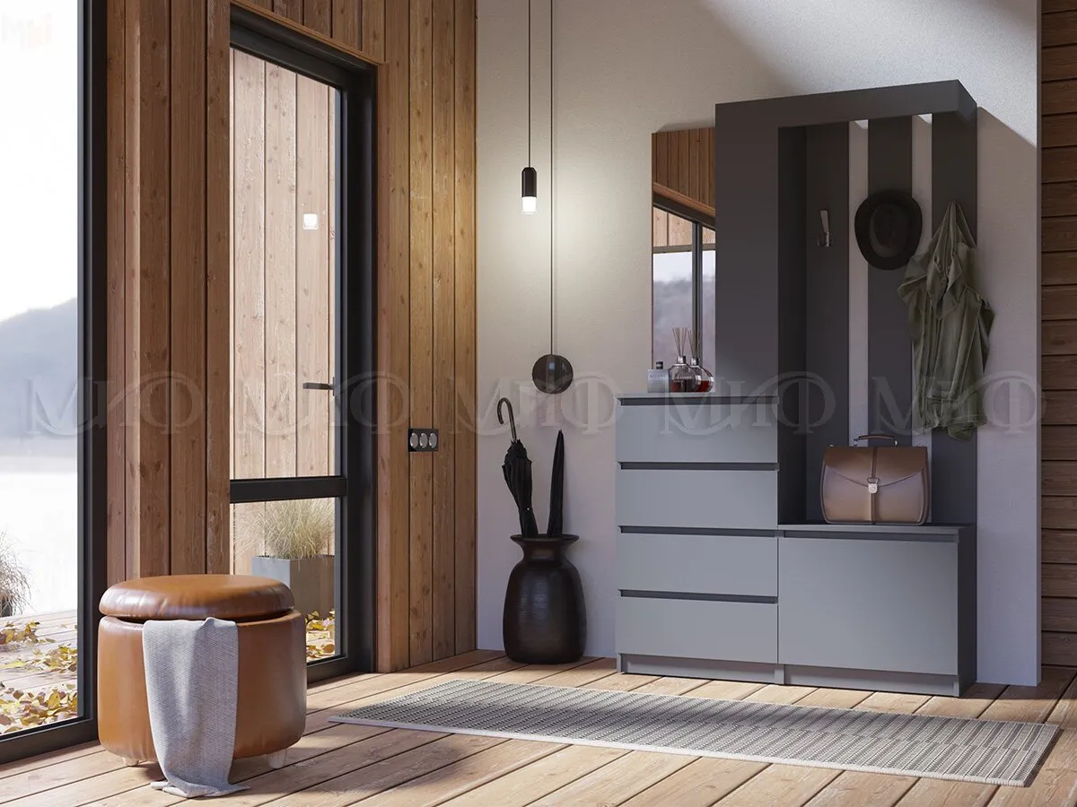 Корпус и фасады прихожей выполнены из ЛДСП цвета графит.