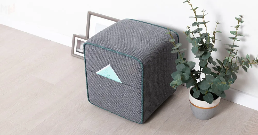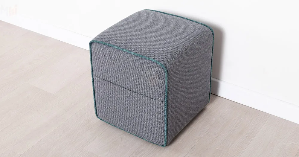 Боковые карманы на противоположных сторонах пуфа, два противоположных торца оформлены контрастным кантом