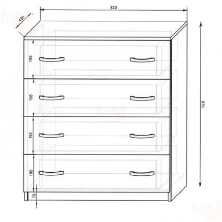 - Комод ФУТ-13/5 для белья. Внутри конструкции предусмотрены четыре ящика.