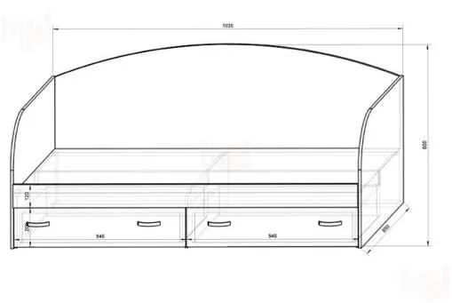 Кровать 1932х850х850 мм. Спальное место 1900х800 мм.