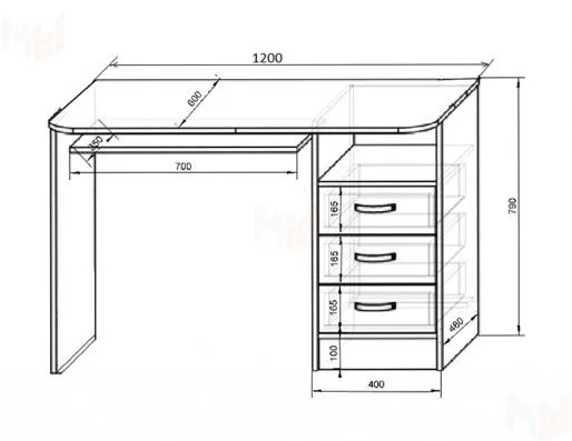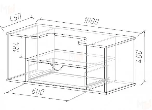 - Письменный стол ФУТ-13/14. Предусмотрены тумба с ящиками и встроенная выкатная полка.