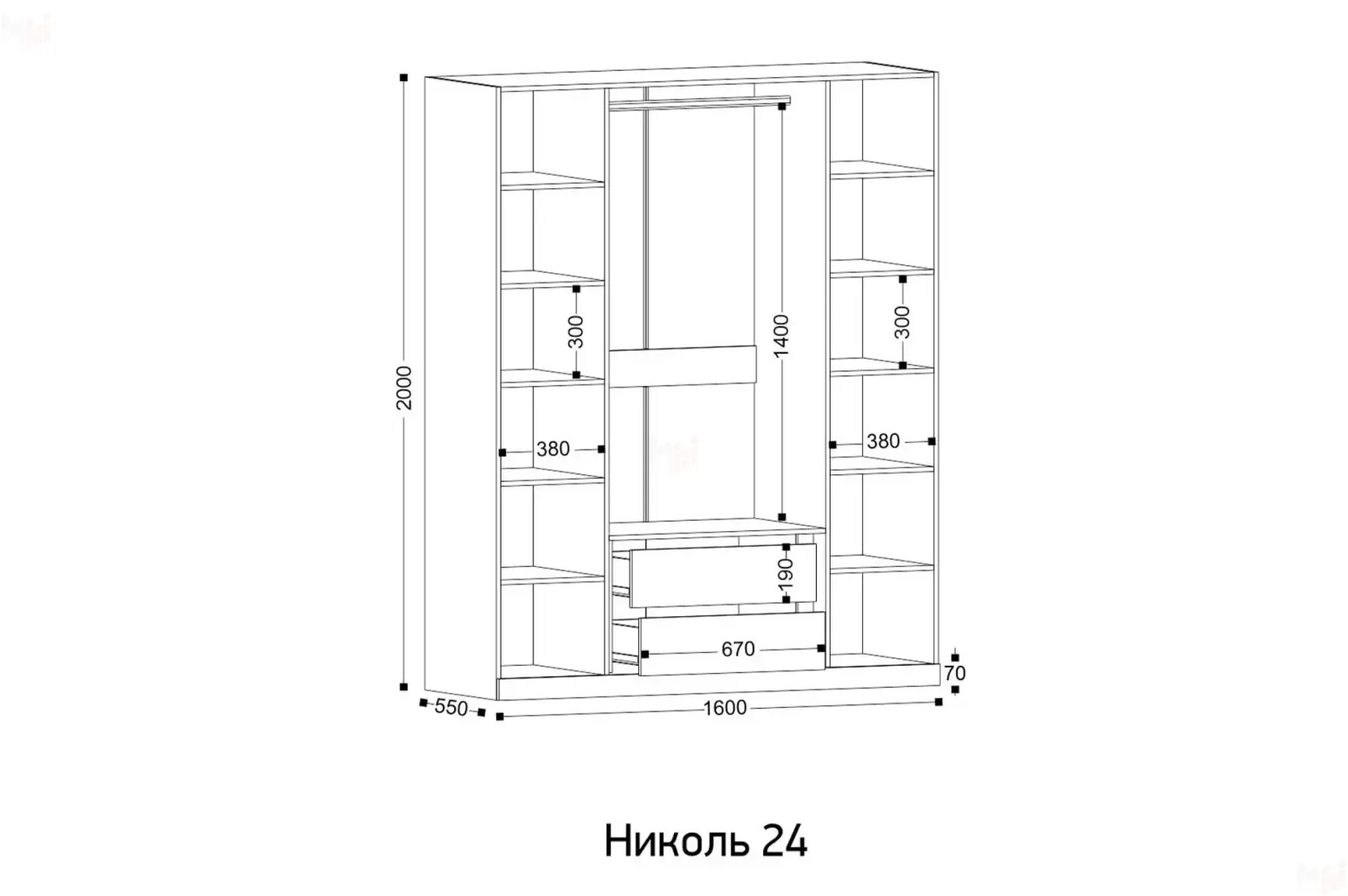 Ширина 1600 мм, Глубина 550 мм, Высота 2000 мм