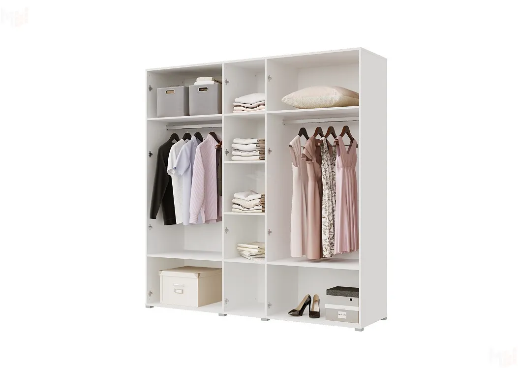 В шкафу есть отделения с полками для белья и штанга для верхней одежды (наполнение №2,4) -