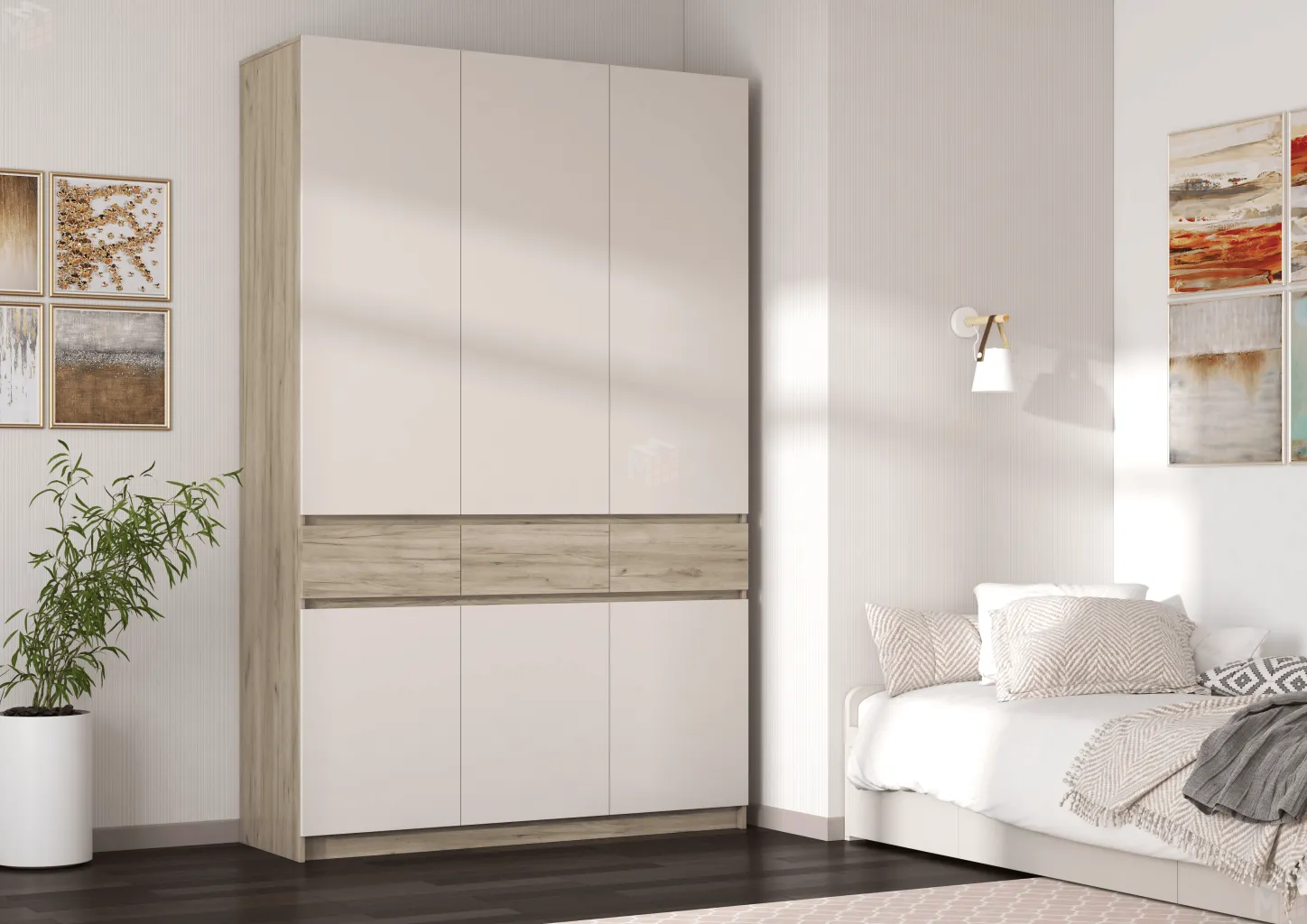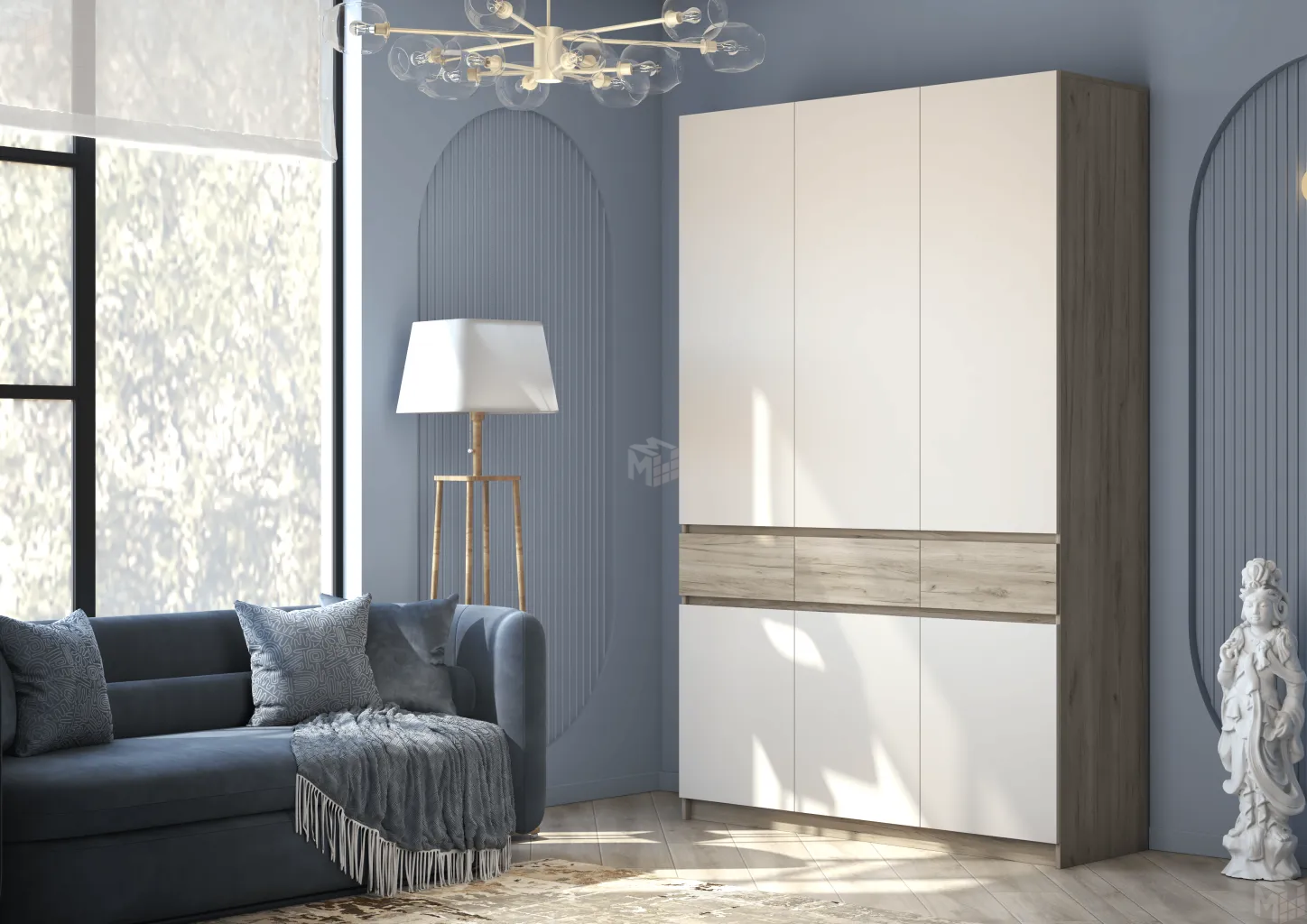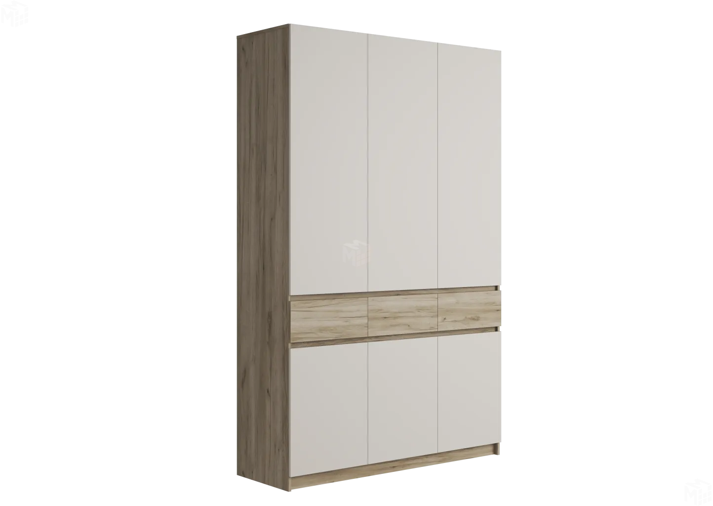 Боковины являются опорами шкафа (на подпятниках). Фасады комбинированные: