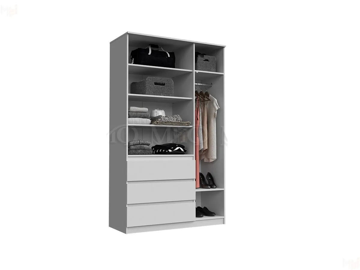 Шкаф оснащен полками для белья, штангами для одежды, есть выдвижные ящики для белья на шариковых направляюших полного выдвижения.