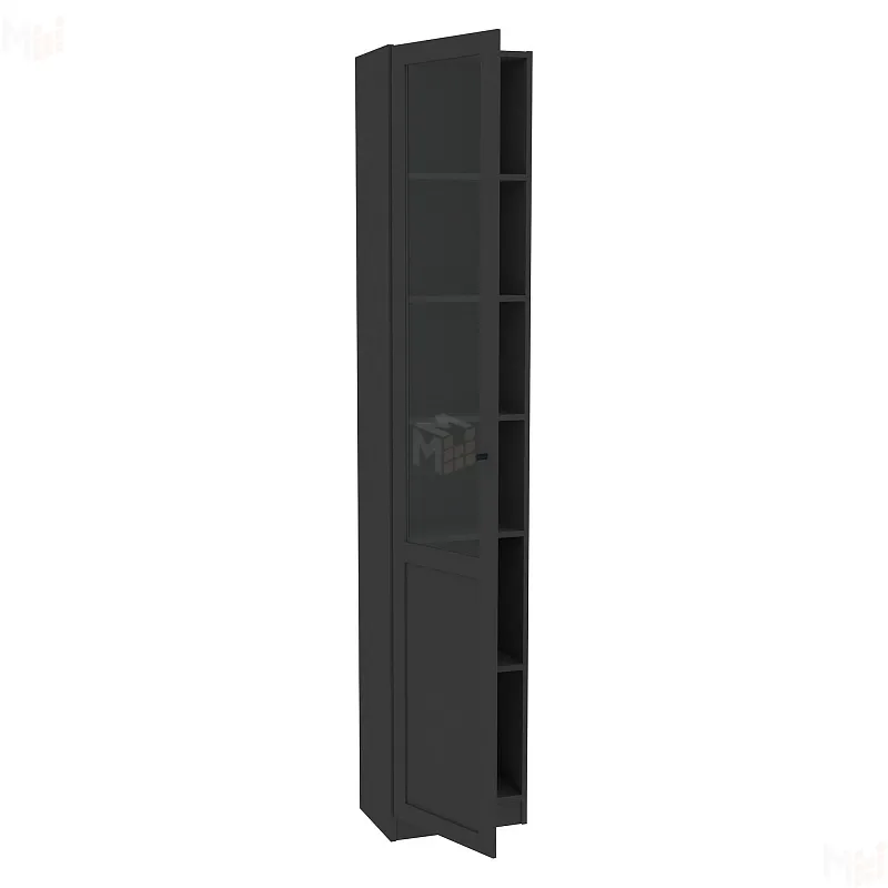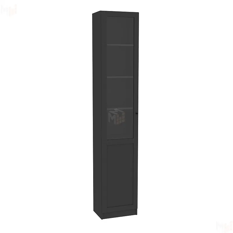 За стеклянным фасадом из закаленного прозрачного стекла регулируемые по высоте полки из ЛДСП, что позволит разместить литературу различного формата. Книжный шкаф обязательно крепить к стене!