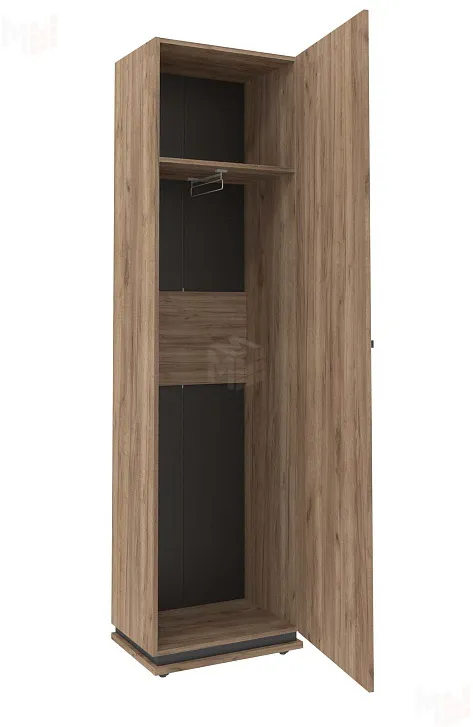 Распашной шкаф для одежды и белья комплектуется выдвижной штангой для одежды. При желании можно докупить и установить модуль NATURE 19 Полки (в комплекте 3 полки) тем самым изменив функционал шкафа. Фасад шкафа перенавешивается на правую и на левую сторону.