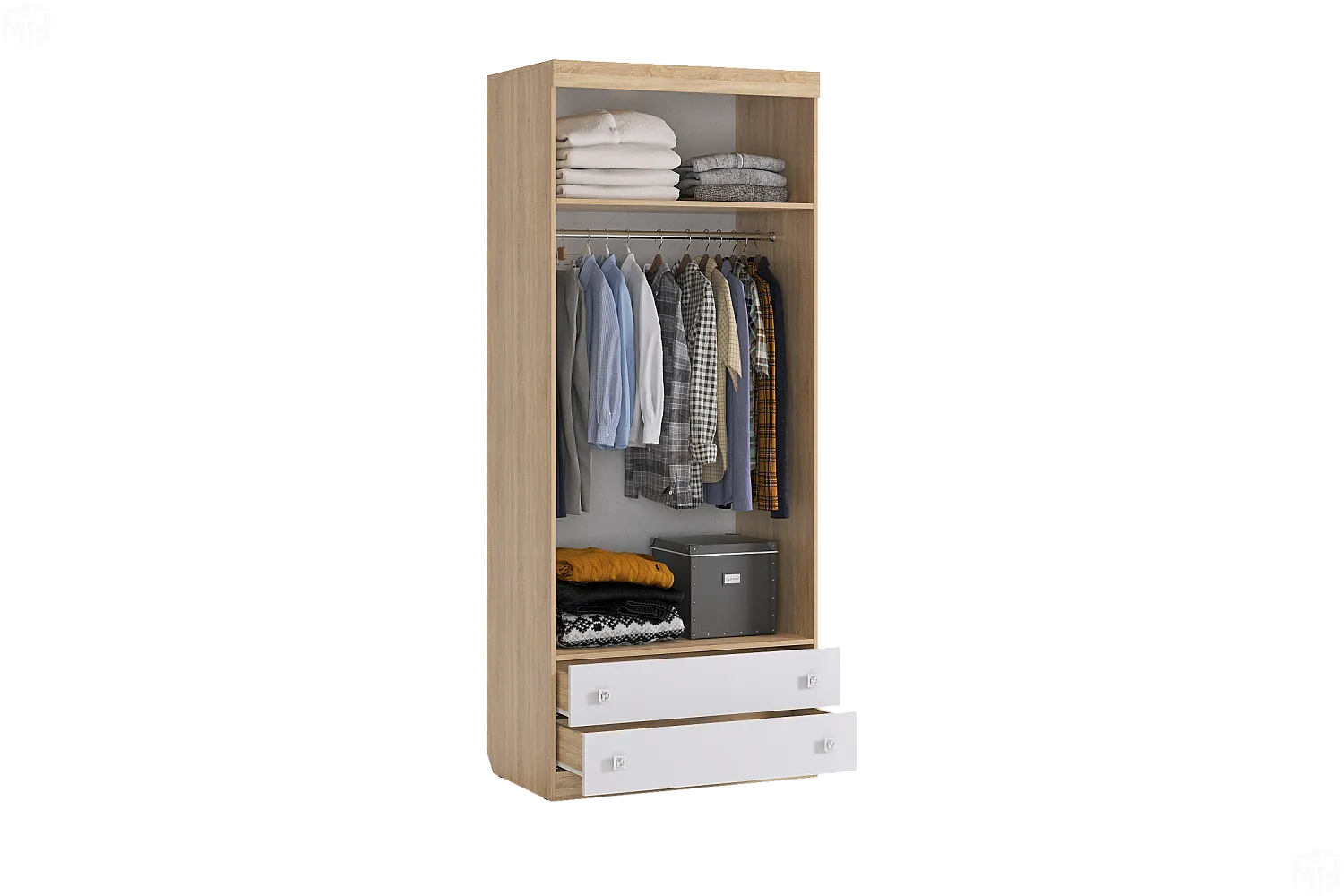Шкаф комбинированный (с ящ. 2-створчатый) Форсаж дуб крафт золотой/белый