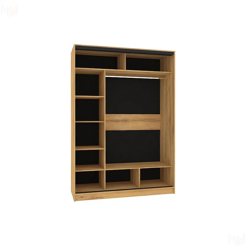 В шкафу-купе шириной 160 см найдется место для гардероба всей семьи. Разместите в нем бельё, верхнюю одежду и аксессуары. Продуманное внутреннее наполнение шкафа состоит из стеллажа для белья, четырех больших ниш внизу и вверху, а также стационарной штанги длиной больше метра. В шкафу-купе используется стальная система "Найди". Применяемый в ее изготовлении металл обеспечивает мебели необходимую прочность и долговечность. По краю дверей шкафа-купе защитная пленка препятствует повреждению красочного слоя металлического профиля. После установки шкафа ее можно удалить.