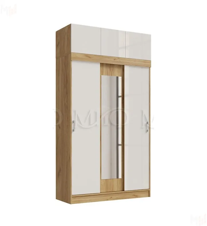 Шкаф-купе с антресолью Роджина/Бася (крафт золотой/белый глянец)