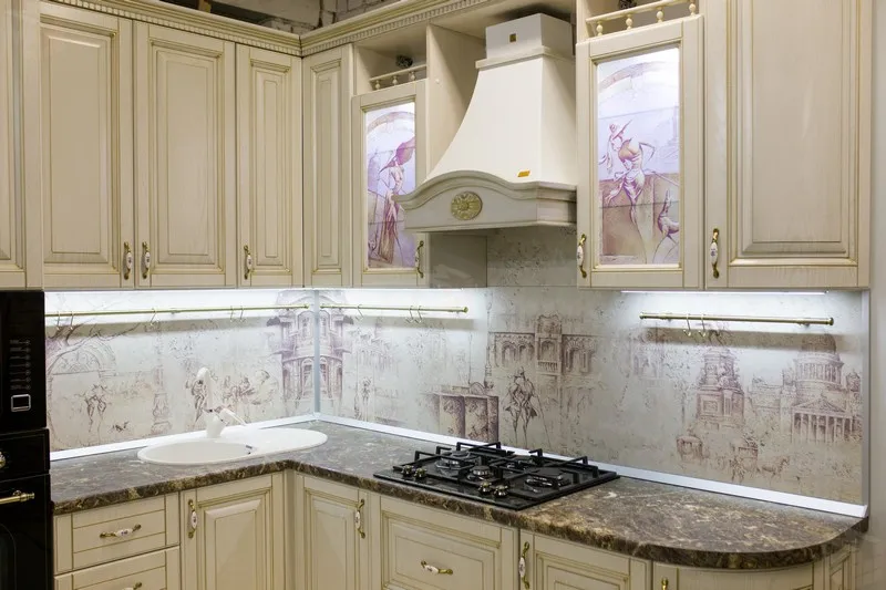 Дверцы со стеклом, с изысканным витражом в смешанной технике : пескоструйный рисунок и фотопечать.