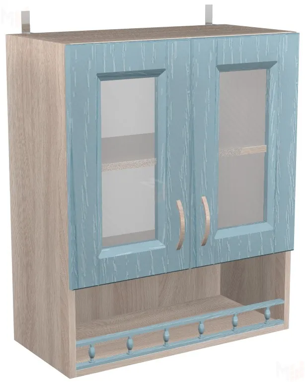 Навесной шкаф с распашным дверками с витражом. Полочка-ниша обрамлена балюстрадой.