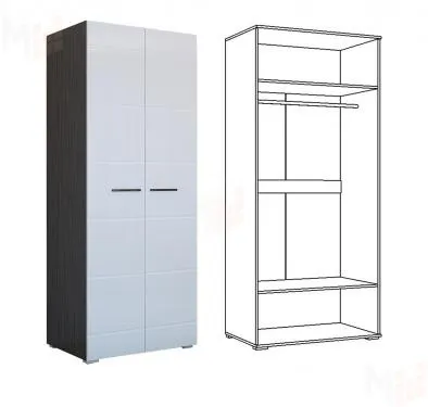 Наполнение шкафа- верхняя и нижняя полки, штанга для верхней одежды. Корпус выполнен из ЛДСП, фасады МДФ.