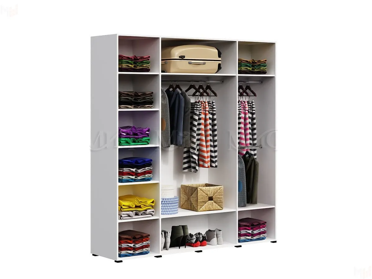 Слева расположены полки для белья, справа отделение со штангой для одежды. -