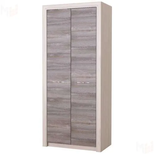 Шкаф 2-створчатый с полкой и поперечной металлической штангой для верхней одежды. Устанавливается стильная металлическая ручка, декор "тёмный никель". Периметр шкафа обрамлён профилем MDF оригинальной