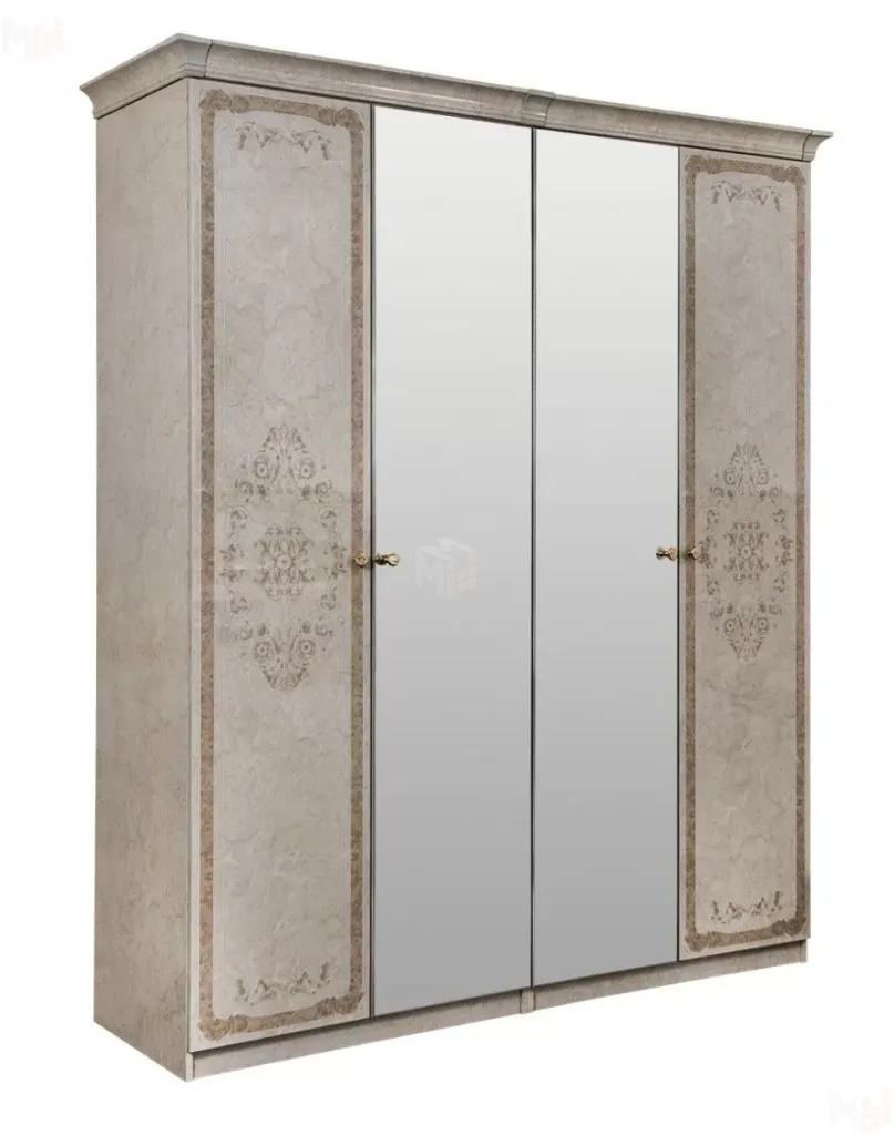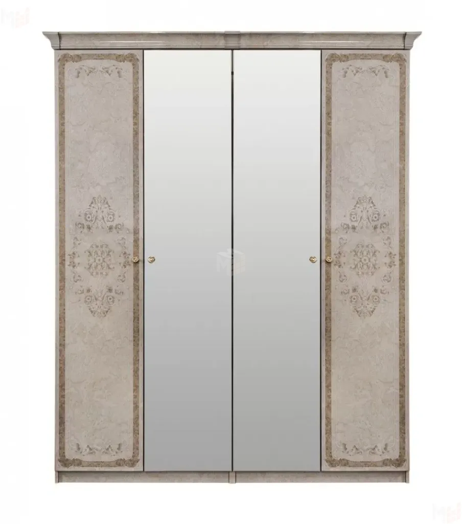 Шкаф Патрисия 4-дверный (2+2) с зеркалом крем корень глянец