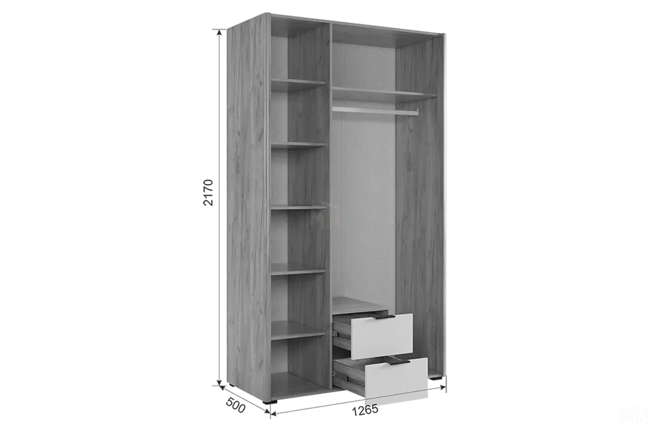 ширина 1264 мм, глубина 500 мм, высота 2170 мм