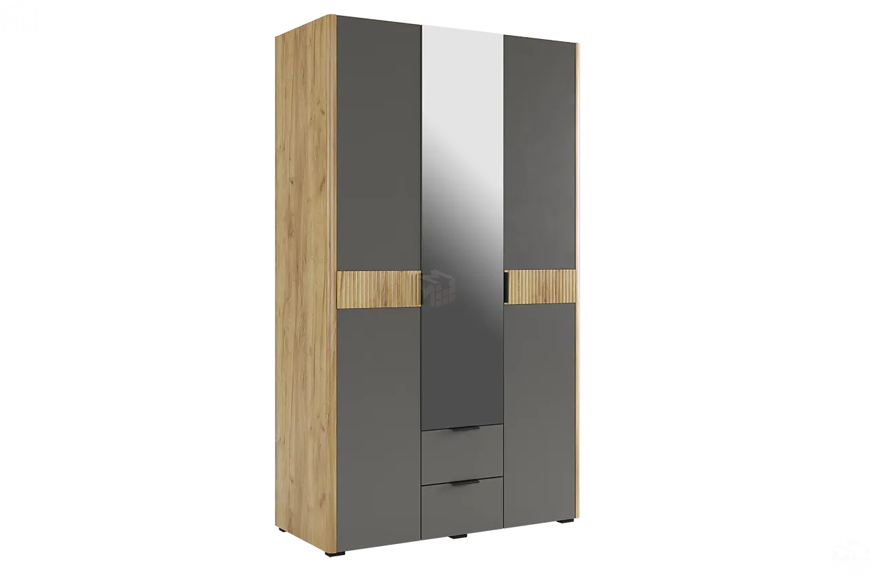 Шкаф трехдверный Адам с зеркалом дуб крафт золотой/графит