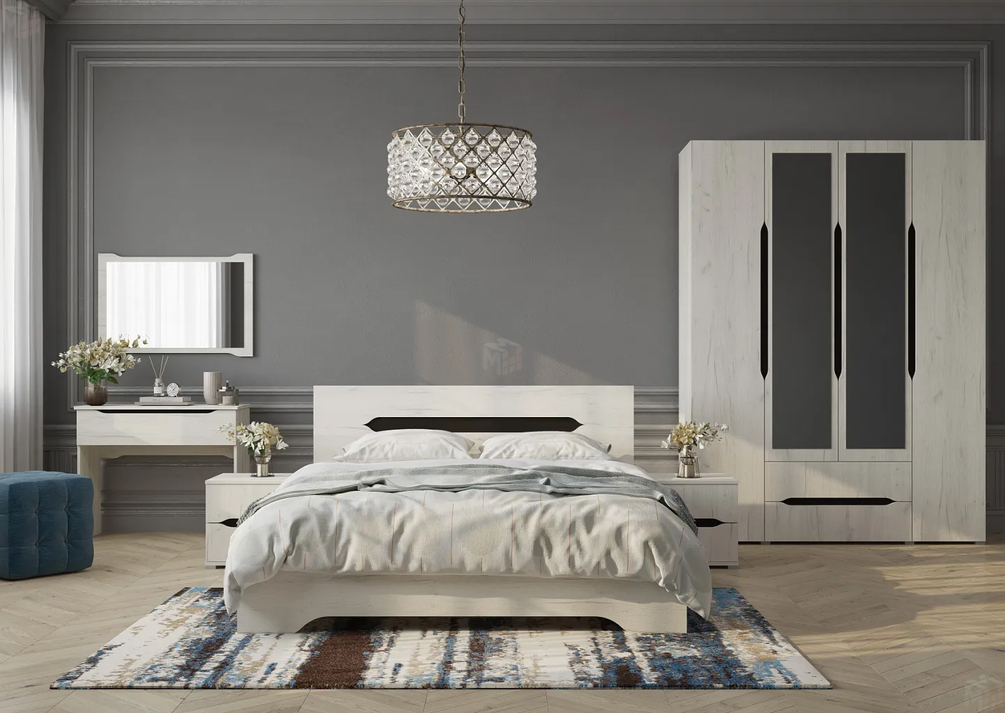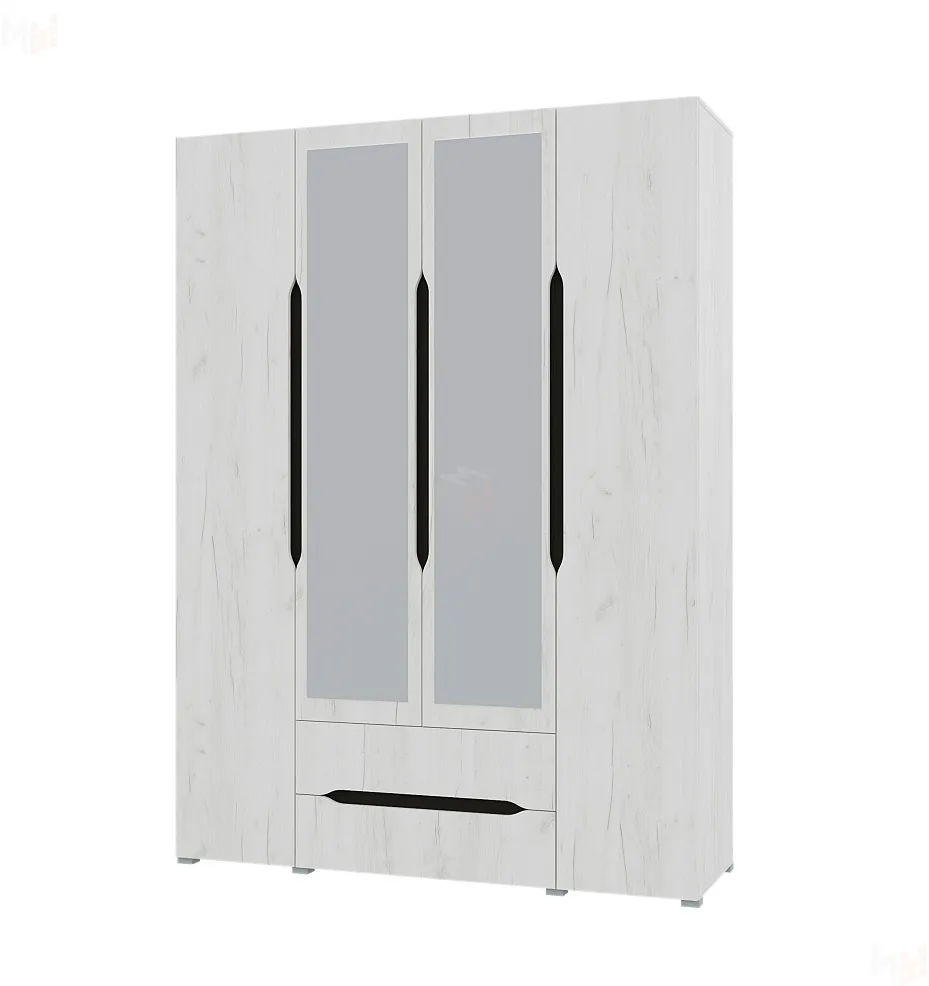 Шкаф 4-х створчатый Вега из спального гарнитура Вега выполнен из ЛДСП Прованс 16 мм. На средних створках шкафа расположено зеркало.