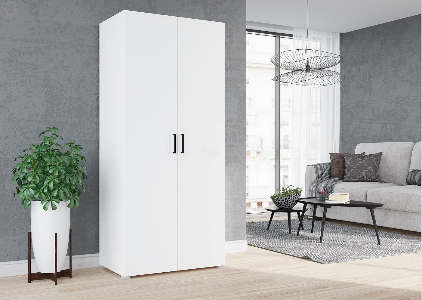 Шкаф 2-х створчатый Виктор выполнен из ЛДСП белого цвета.