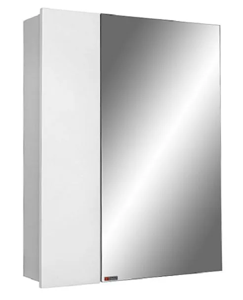 Шкаф-зеркало для ванной комнаты. Петли с доводчиками. Покрытие - эмаль. Поставляется в собранном виде.