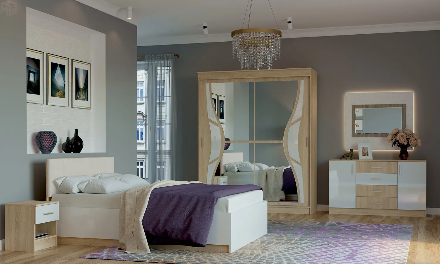 Спальня БЕАТРИС Дуб Сонома - Белый глянец №8