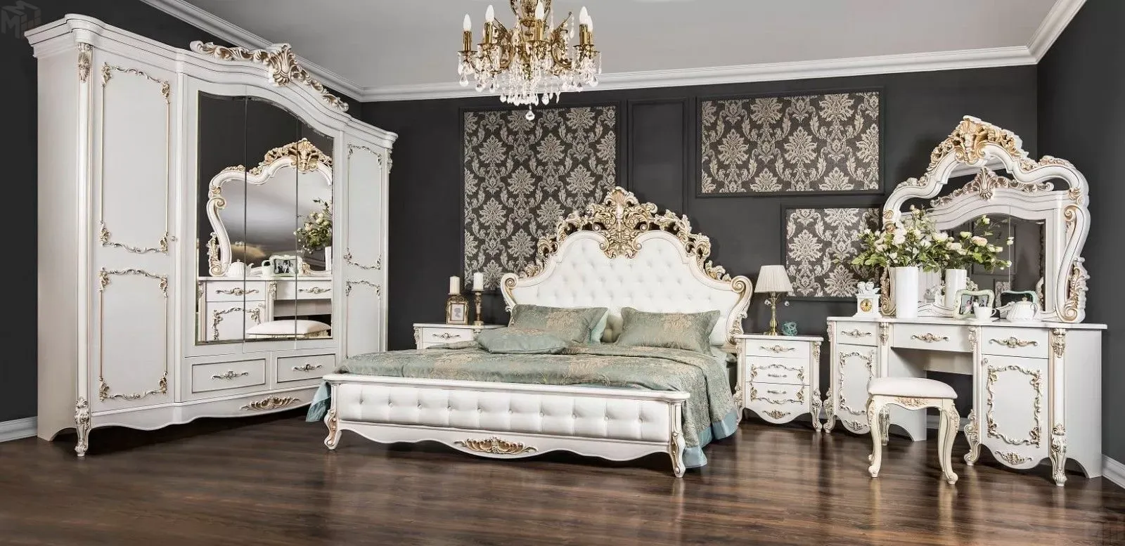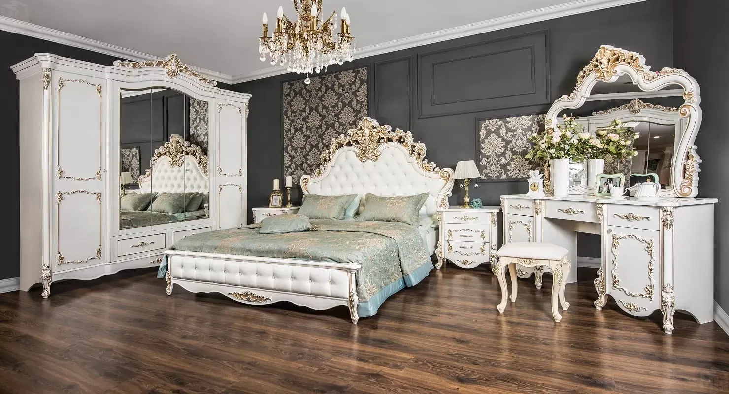 Декоративные элементы, фасады, накладки покрыты золотой патиной и матовым лаком