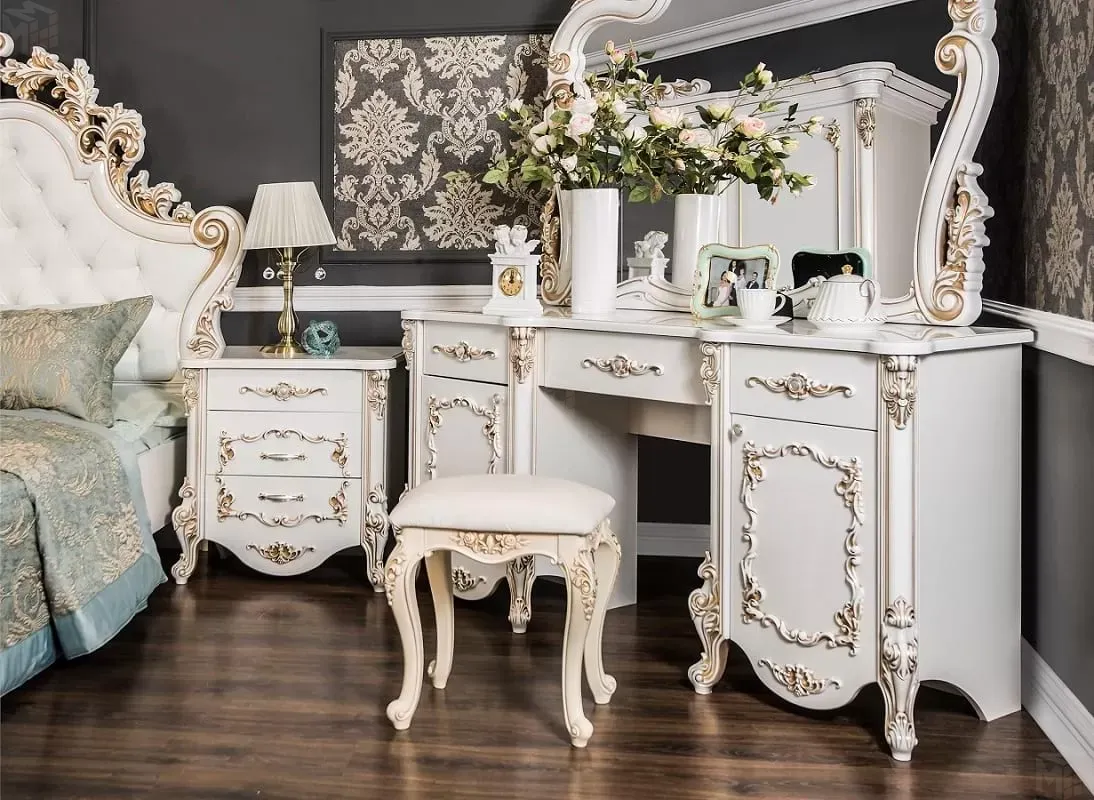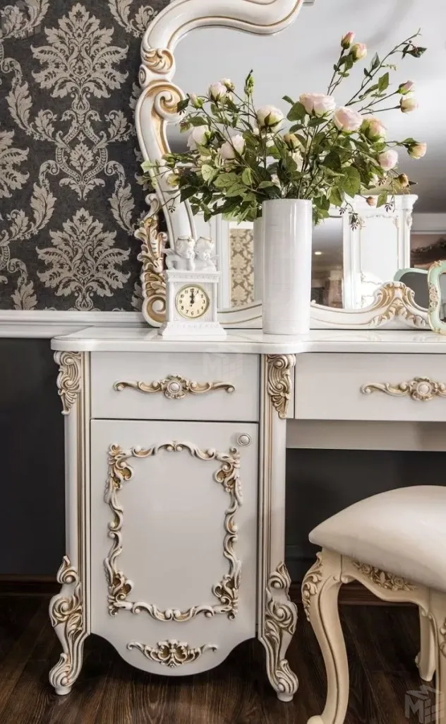 Туалетный столик Флоренция белый перламутр глянец