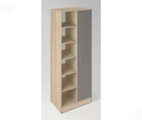 Конструкция состоит из двух половин: полки открытые с задней стенкой; полки с дверью (4 шт). Дверь изготавливается в цвет фасада.