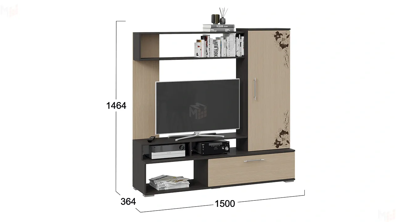 Ширина 1500 мм, Глубина 364 мм, Высота 1464 мм