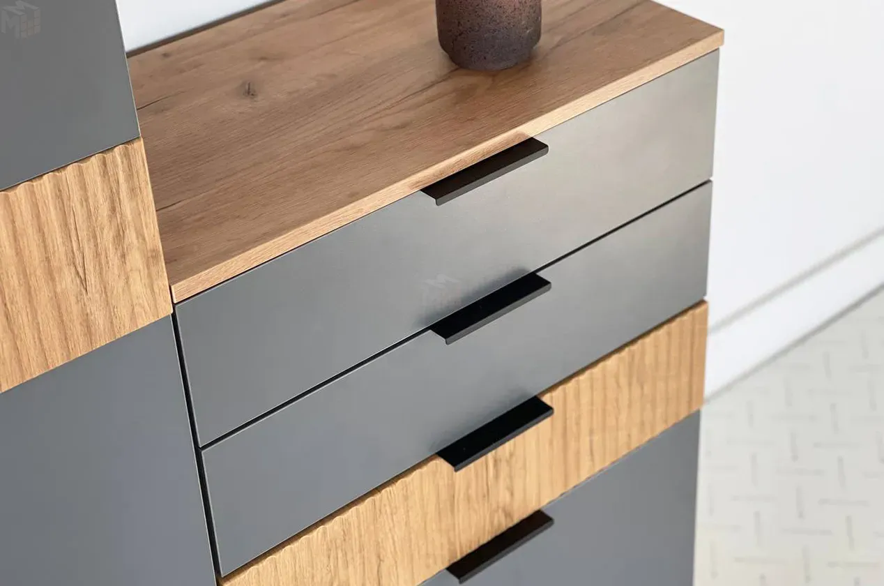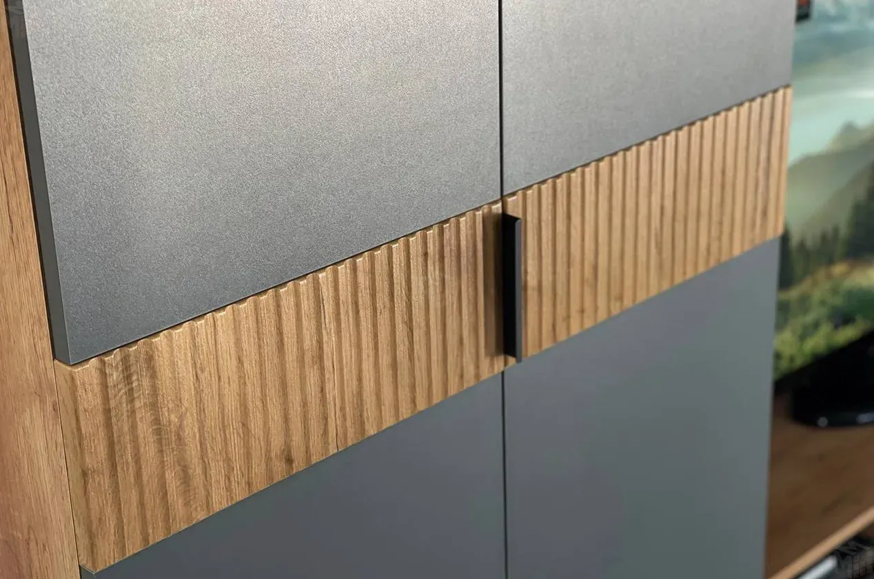 Стенка в гостиную Бери дуб крафт золотой/графит
