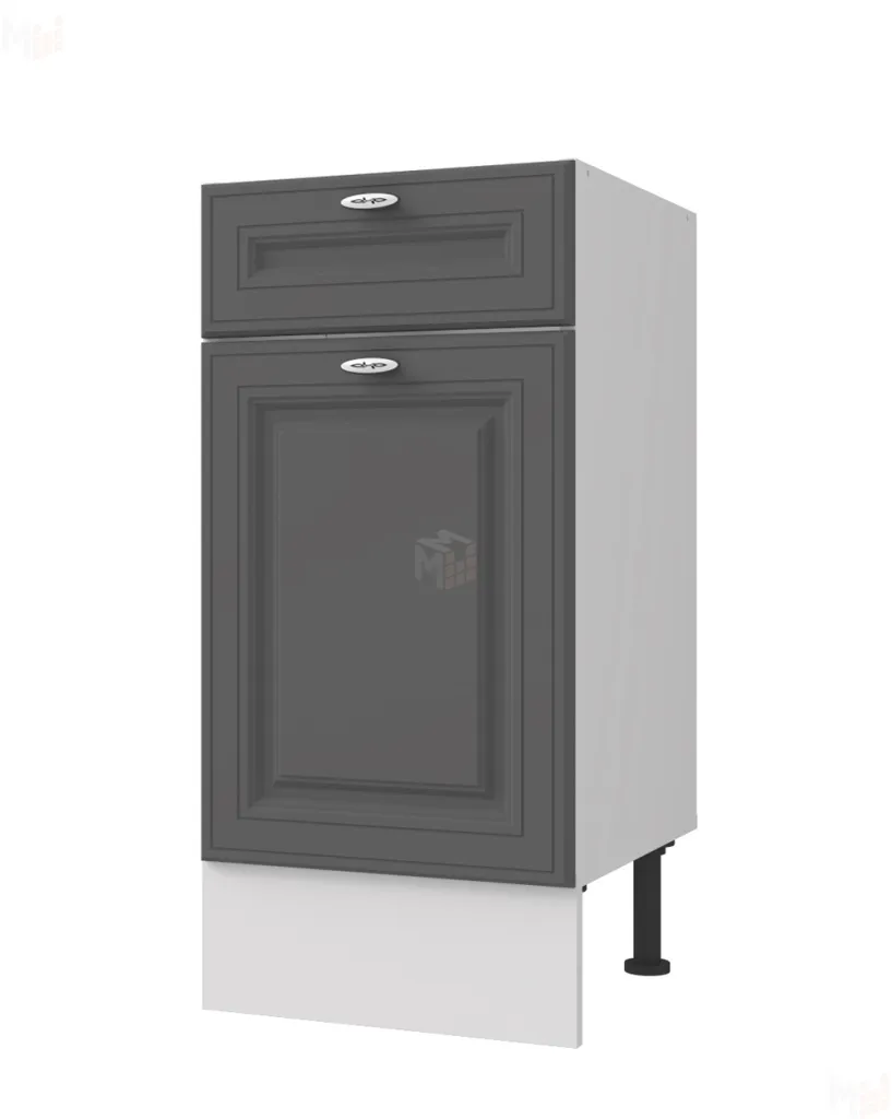 Корпус ЛДСП белый, фасад МДФ Софт. Направляющие роликовые. Регулируемые опоры 150 мм. Цоколь ЛДСП в комплекте.