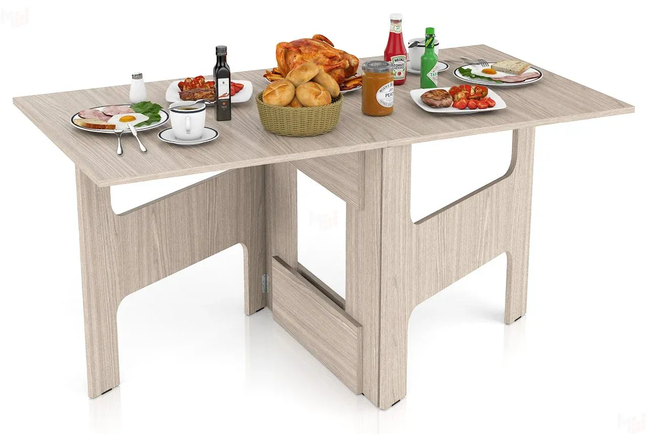 Стол-книжка обеденный компактный. Цвет на выбор: дуб, венге, ясень шимо светлый. Разложенный вид ШхГхВ 150 х 80 х 75 см, сложенный 9 х 80 х 75 см.