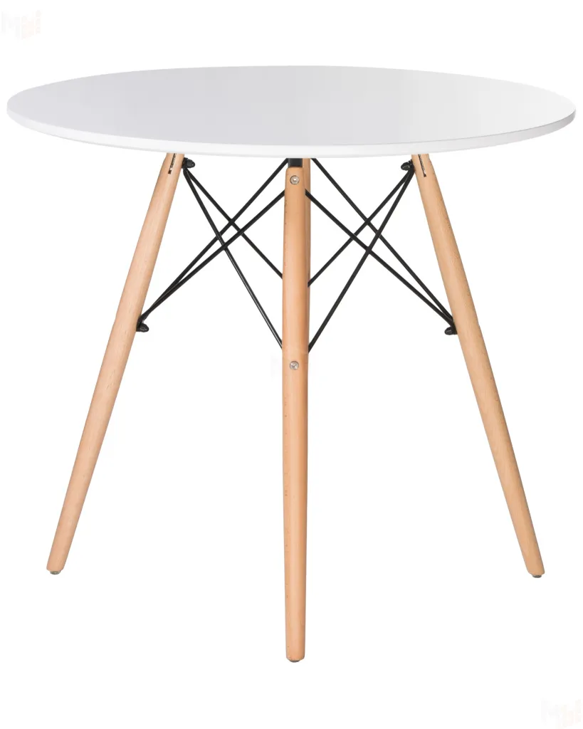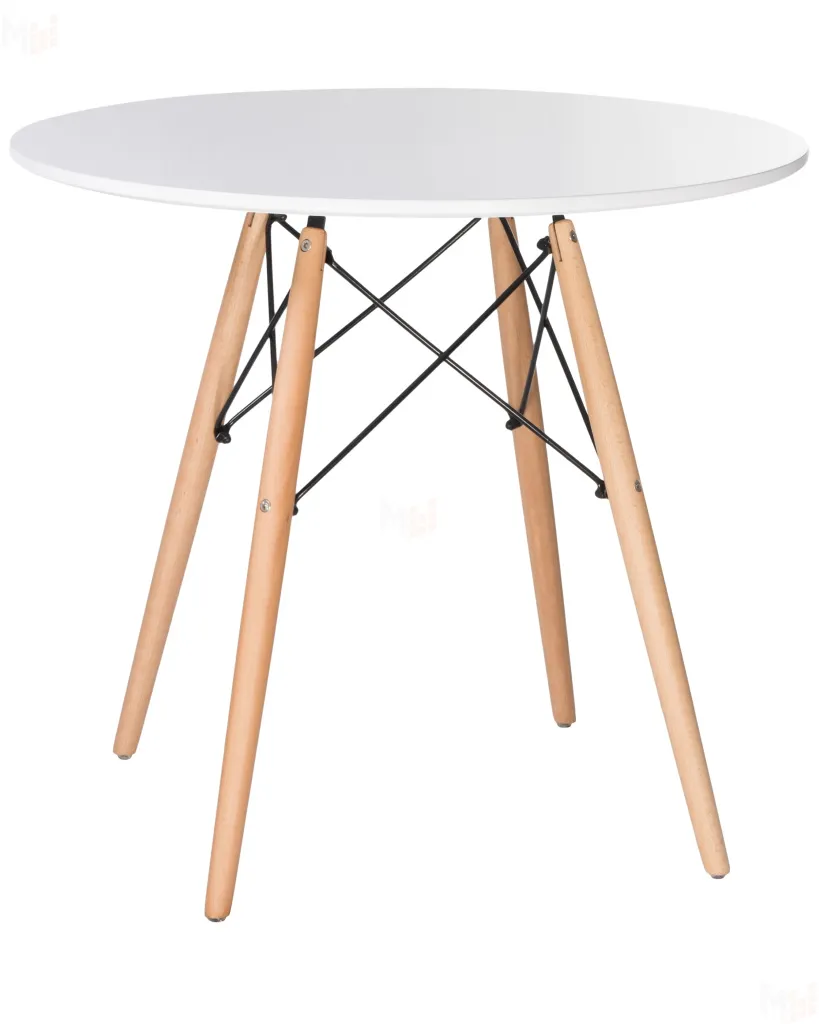 Массив дерева, чёрная сталь, белый гладкий МДФ, диаметр столешницы 80см -