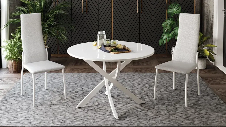Стол обеденный Diamond Тип 2 - КМ+02.68.000.167 Белый муар, Белый глянец