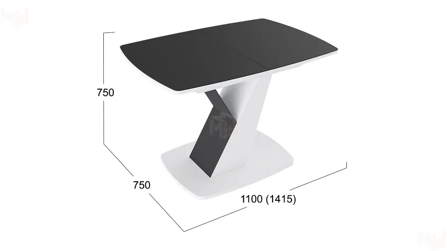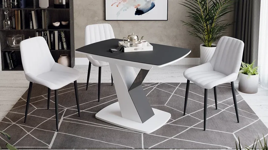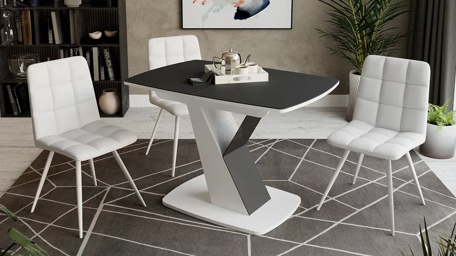 Стол обеденный Гарда Тип 1 Белый, Стекло матовое черный графит