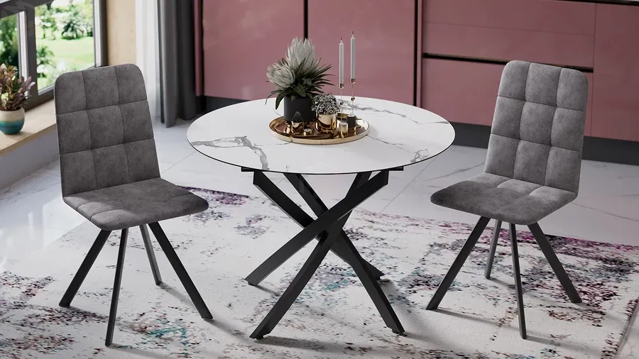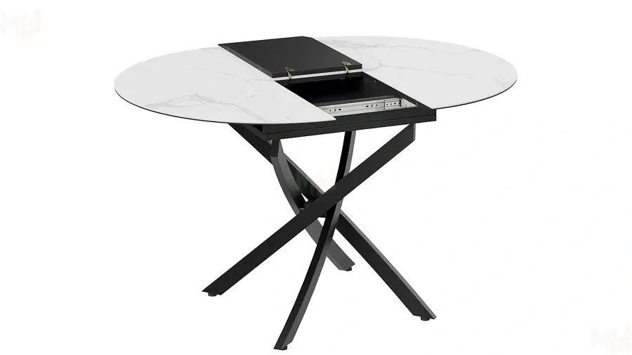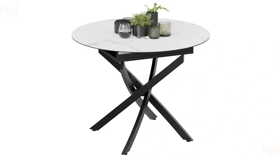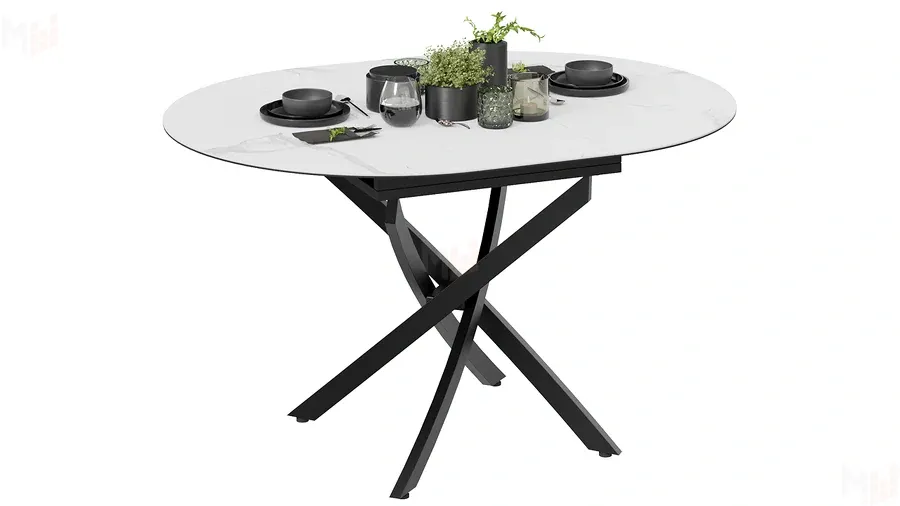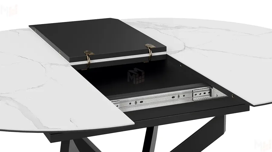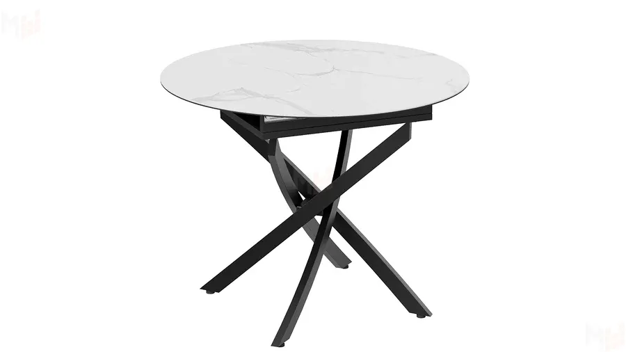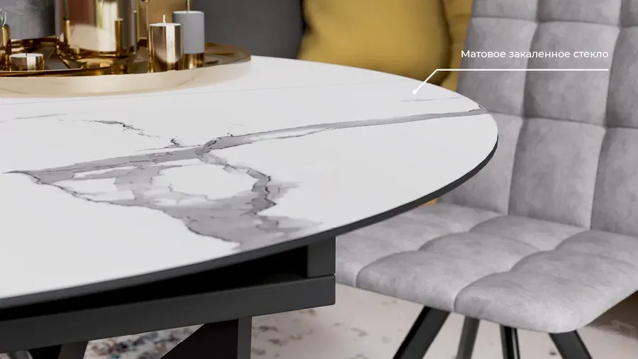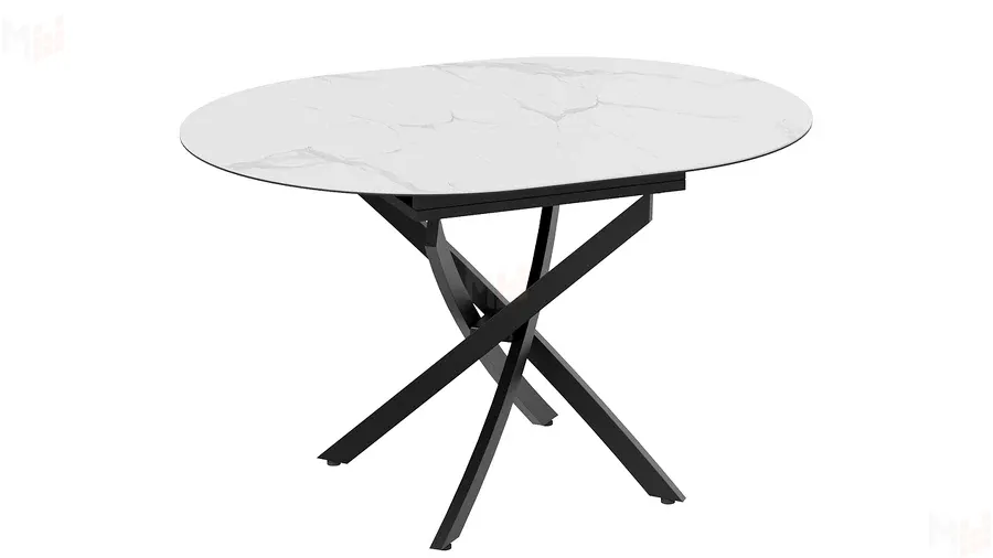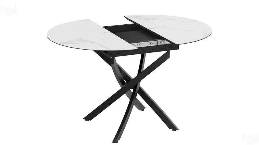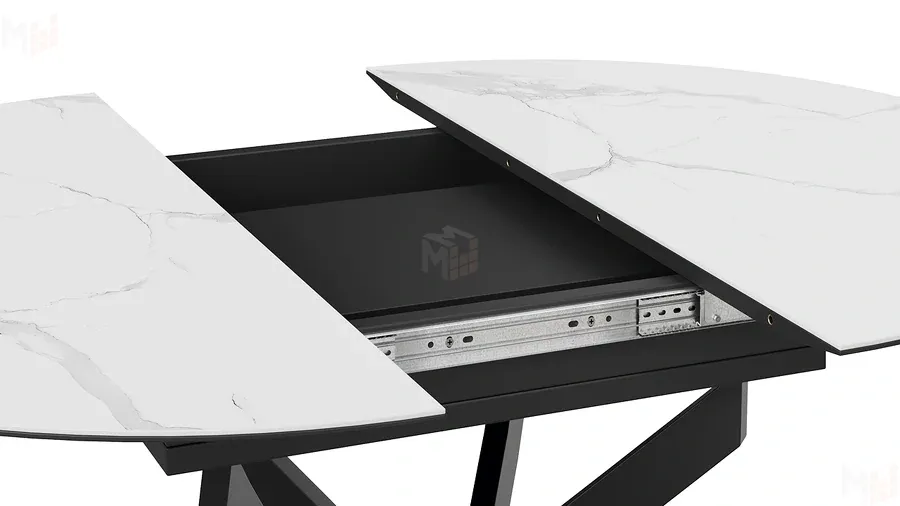 Стол обеденный раздвижной Бергамо Тип 1 Черный муар, Стекло матовое белый мрамор