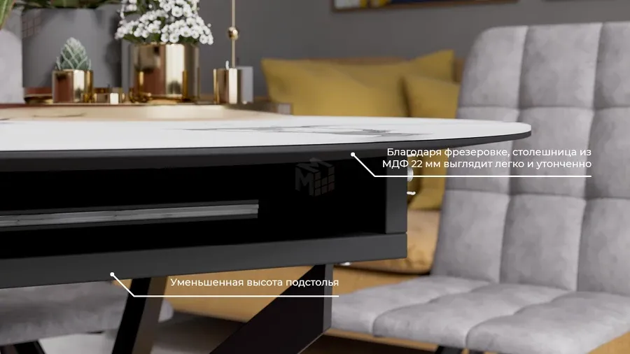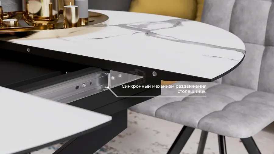 Габаритная длина (в разложенном виде) 1 318 ммМатериал вставки столешницы МДФ, закаленное стекло