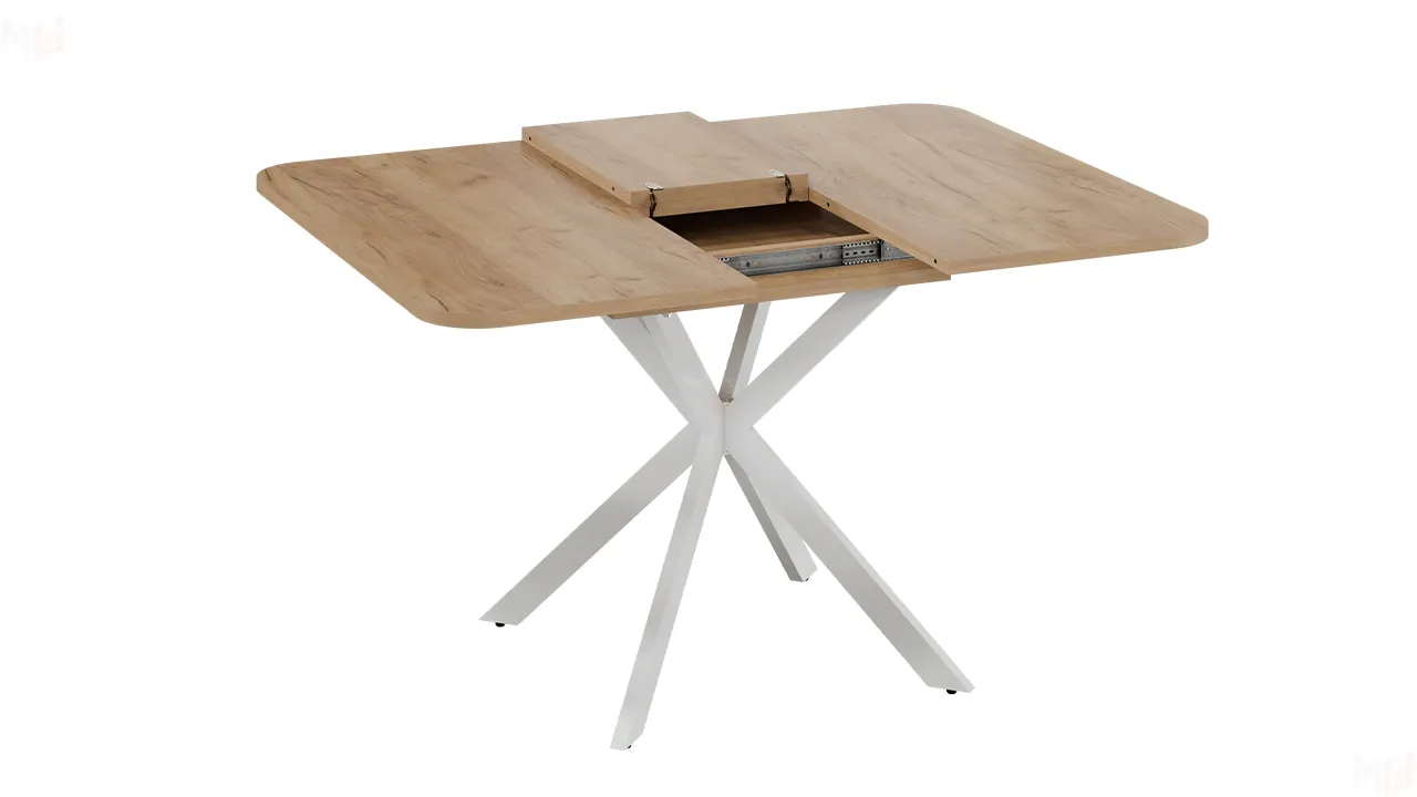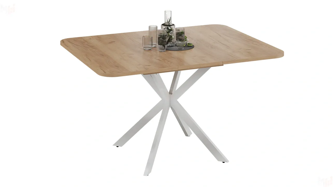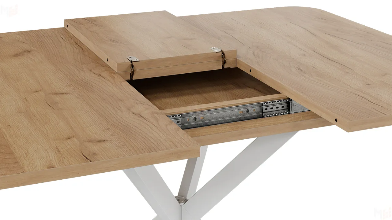 Стол обеденный раздвижной Лиссабон Тип 1 Белый муар, Дуб Крафт золотой