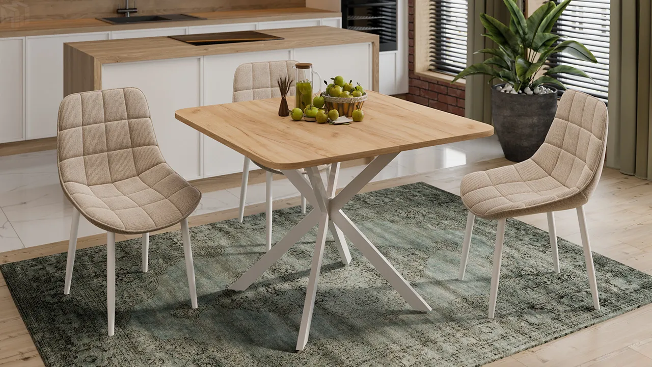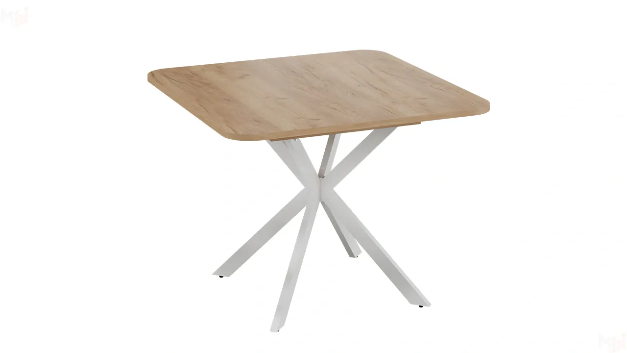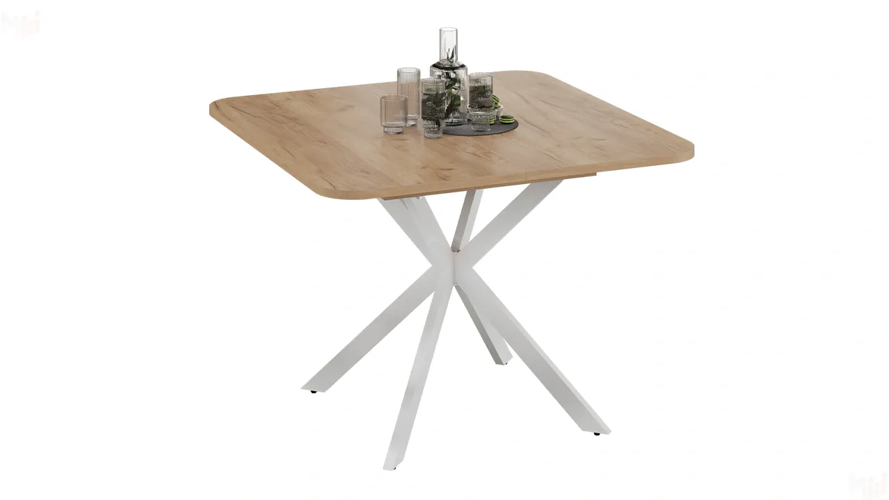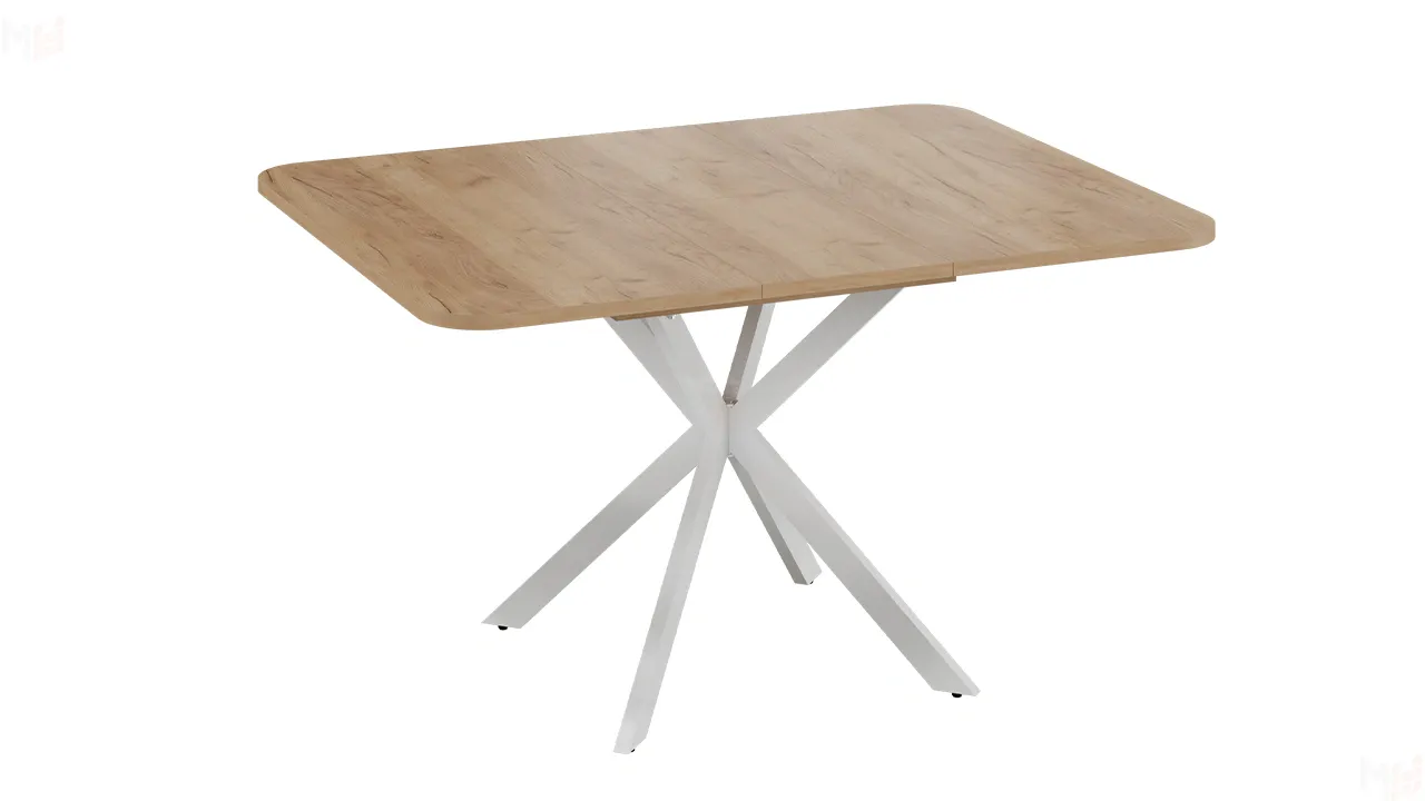 Стол обеденный раздвижной Лиссабон Тип 1 Белый муар, Дуб Крафт золотой
