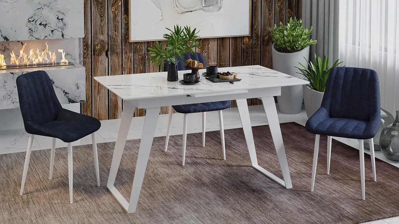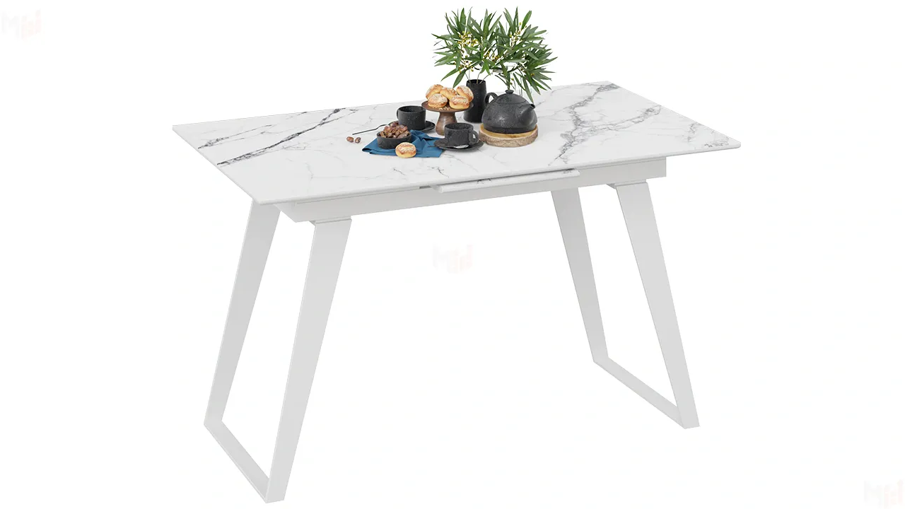 Стол обеденный Техно Белый муар, Стекло глянцевое белый мрамор