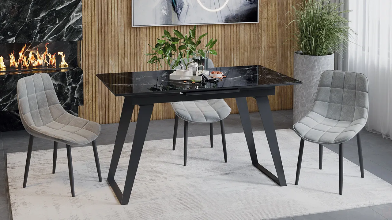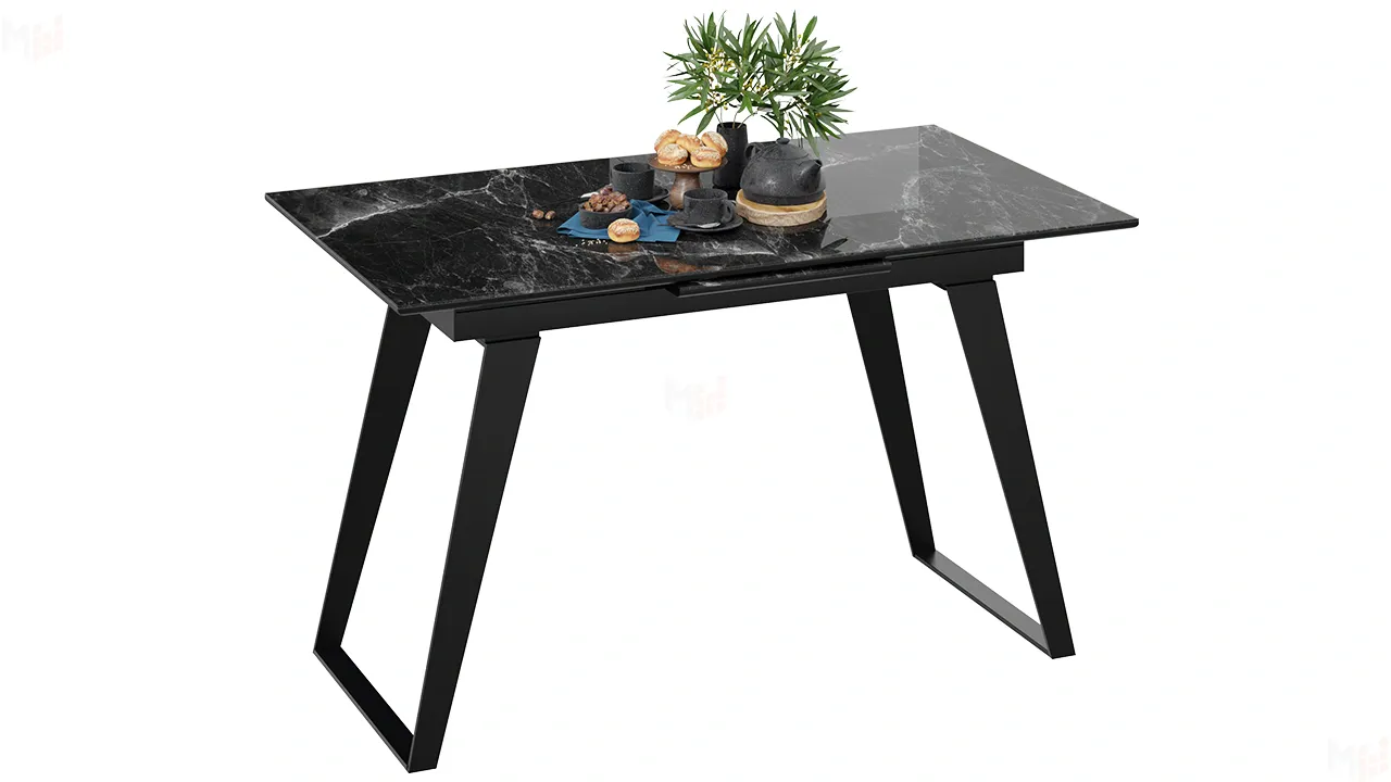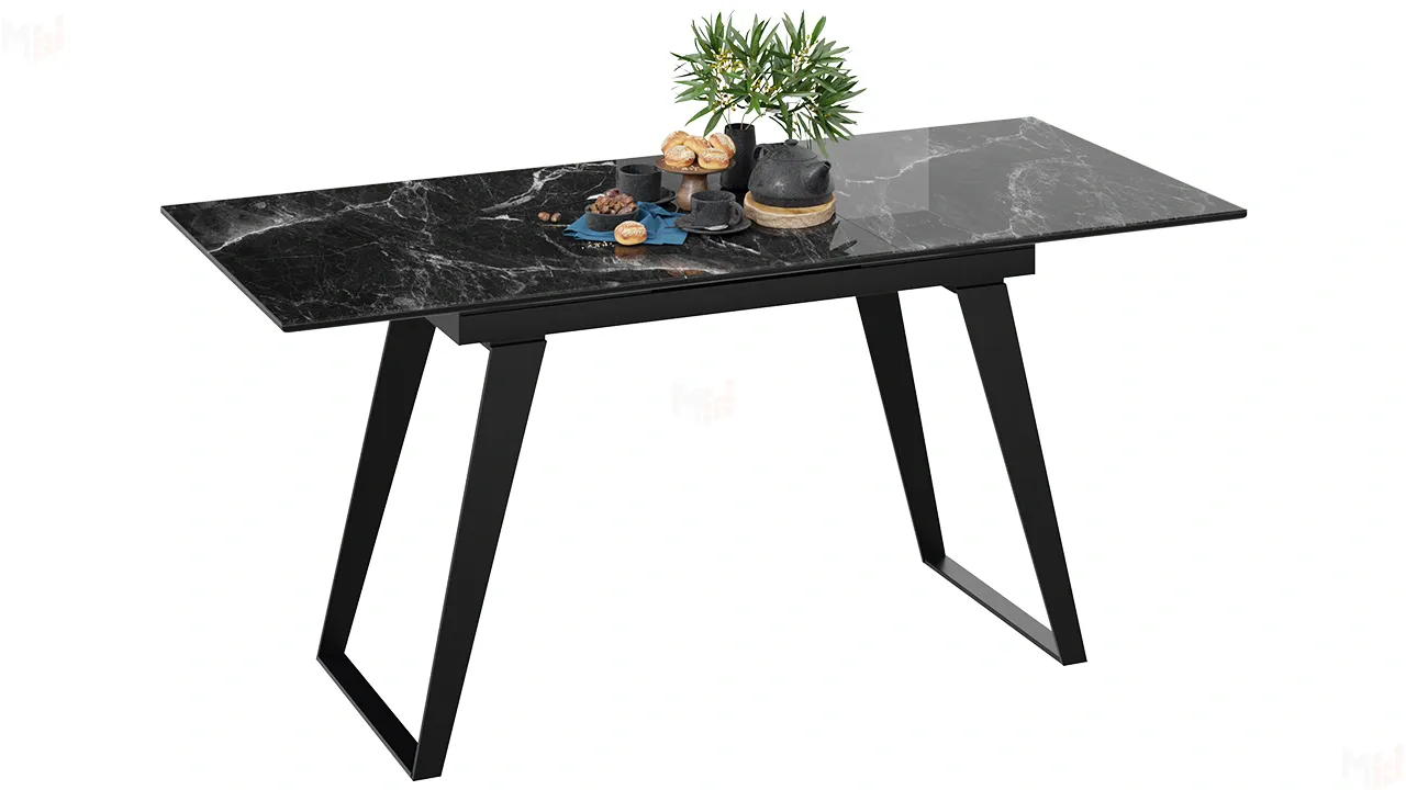 Стол обеденный Техно Черный муар, Стекло глянцевое черный мрамор