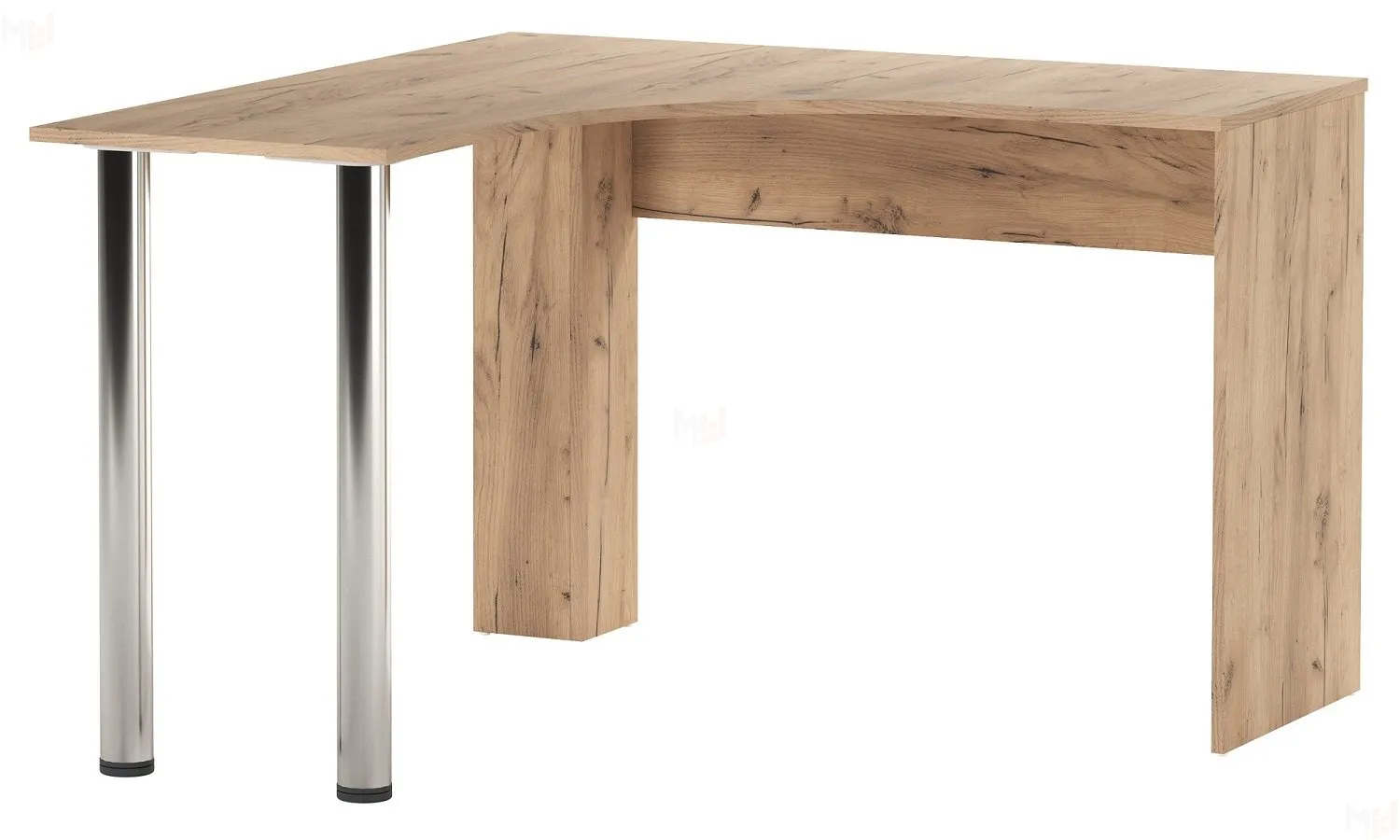Стол письменный угловой ГРЕТТА на металлических опорах. Радиусная крышка стола обработана кромкой толщиной 1 мм, что делает работу за столом более комфортной и удобной.